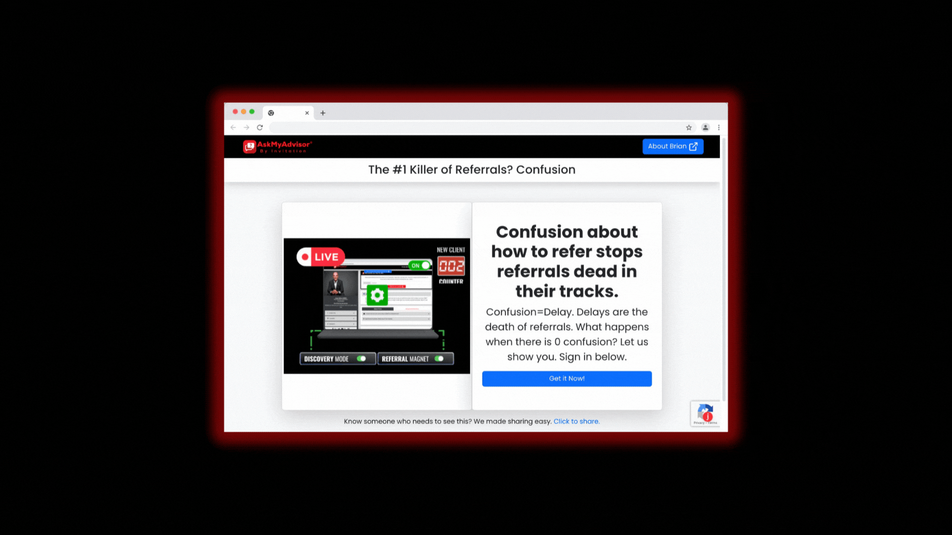 Unlike your AskMyAdvisor® AdvisorOneLink™ that you only invite your top 20% clients+their COI for access...The URLs you produce here are built to share anywhere and everywhere, yet still produce the same outcome...The crème de la crème of people reaching out to you.